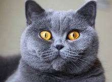 The British Shorthair is the pedigreed version of the traditional British domestic cat, with a distinctively chunky body, dense coat and broad face. The most familiar color variant