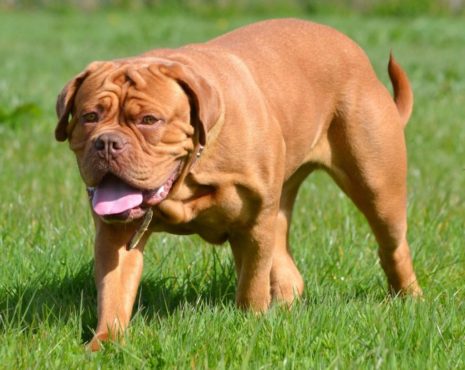 The courageous French Mastiff dogs also known as Dogue de Bordeaux. This breed of dog is distinguished by their massive head and muscular body. The adult dogs can have a height between 20-23 inches and weigh up to 62.2 kg. Their skin is very thick and the bod features significant wrinkles on their face and neck.