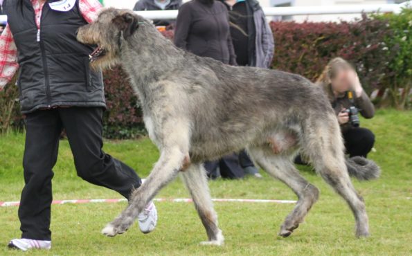 The giant-sized Irish wolfhound has a long head and muzzle. Their legs are long and strong. It let the Irish wolfhound dogs in gaining great speed while hunting a prey. The wide and deep chest also reflects the power of this breed.
